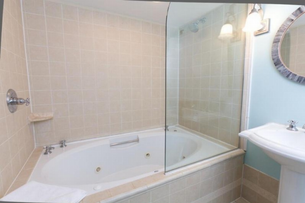 This suite is on the 2nd level of the cottage behind the main house and offers a dining area, gas fireplace, and seating area as well as a refrigerator, microwave, and wet bar. A Tempurpedic mattress and a spa bath are also included.